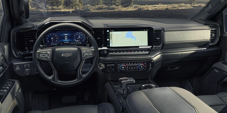 Visit your Chevrolet dealership to view this pickup's unique configuration. Touch the dashboard's smooth gloss-black trim throughout the cabin, which adds a sense of refinement and elegance; feel the air flood the interior through the single-pane sunroof; and enjoy the digital instrument cluster dash, offering more customization. This pickup boasts a sporty design coupled with ease of use. A leather-wrapped steering wheel has adaptive cruise control, heated-seat buttons, mounted controls for your phone, and a convenient pad for the center LCD display. These features, coupled with a responsive Google-powered touchscreen, offer a user-friendly high-tech experience to make life easier.