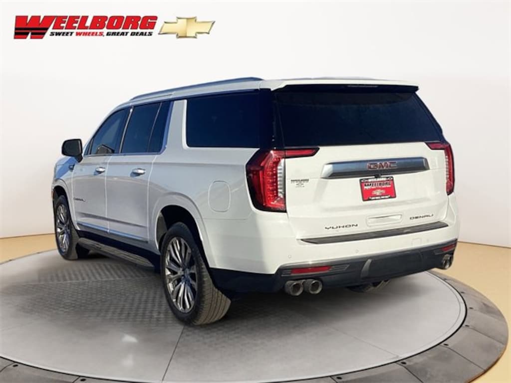 Weelborg Chevrolet of Glencoe is proud to present this 2022 GMC Yukon XL Denali. 14 Speakers, 3rd Row 60/40 Power-Folding Split-Bench Seat, 4-Wheel Disc Brakes, ABS brakes, Air Conditioning, AM/FM radio: SiriusXM with 360L, AM/FM Stereo, Apple CarPlay/Android Auto, Auto High-beam Headlights, Automatic Emergency Braking, Automatic temperature control, Bose 14-Speaker Surround w/CenterPoint, Brake assist, Delay-off headlights, Dual Exhaust System, Dual front impact airbags, Dual front side impact airbags, Electronic Stability Control, Following Distance Indicator, Forward Collision Alert, Front & Rear Park Assist, Front anti-roll bar, Front dual zone A/C, Front fog lights, Front Pedestrian Braking, Fully automatic headlights, Hands-Free Power Programmable Rear Liftgate, HD Surround Vision, Heated & Ventilated Driver & Front Passenger Seats, Heated Steering Wheel, Hill Descent Control, Lane Change Alert w/Side Blind Zone Alert, Lane Keep Assist w/Lane Departure Warning, Leather steering wheel, Low tire pressure warning, Memory seat, Occupant sensing airbag, Outside Heated Power-Adjustable Mirrors, Overhead airbag, Perforated Leather Seating Surfaces, Power driver seat, Power Liftgate, Power steering, Power Tilt & Telescopic Steering Column, Power windows, Rain sensing wipers, Rear air conditioning, Rear anti-roll bar, Rear Cross Traffic Alert, Rear Pedestrian Alert, Rear window defroster, Rear window wiper, Safety Alert Seat, SiriusXM w/360L, Speed control, Speed-sensing steering, Steering wheel memory, Steering wheel mounted audio controls, Telescoping steering wheel, Tilt steering wheel, Traction control, Turn signal indicator mirrors, Variably intermittent wipers, Wheel Locks (Set of 4) (LPO), Wheels: 22 x 9 Bright Machined Aluminum.