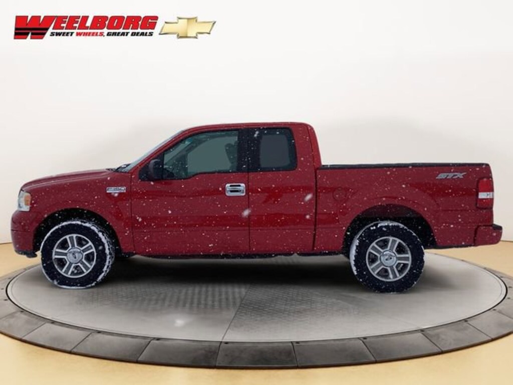 Weelborg Chevrolet of Glencoe is proud to present this 2008 Ford F-150 STX. 17 Chrome Clad Steel Wheels, 4 Speakers, 4-Wheel Disc Brakes, ABS brakes, Air Conditioning, AM/FM radio, AM/FM Stereo/Clock/Single CD, Bumpers: body-color, CD player, Cloth 40/20/40 Front Seat, Driver door bin, Dual front impact airbags, Front anti-roll bar, Front Center Armrest w/Storage, Front wheel independent suspension, Low tire pressure warning, Occupant sensing airbag, Passenger door bin, Passenger vanity mirror, Power steering, Rear step bumper, Split folding rear seat, Tilt steering wheel, Variably intermittent wipers, Voltmeter.