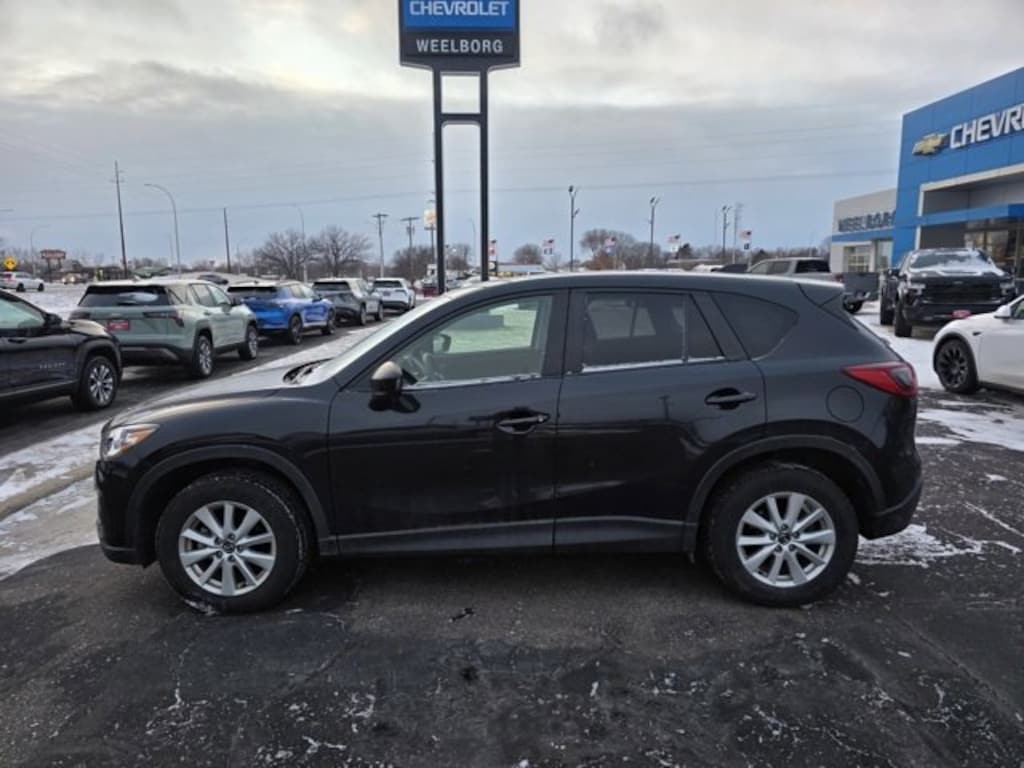 Weelborg Chevrolet of Glencoe is proud to present this 2013 Mazda CX-5 Touring. 17 x 7J Aluminum Alloy Wheels, 4-Wheel Disc Brakes, 6 Speakers, Air Conditioning, AM/FM radio, Brake assist, CD player, Cloth Seat Trim, Delay-off headlights, Driver vanity mirror, Dual front impact airbags, Dual front side impact airbags, Electronic Stability Control, Exterior Parking Camera Rear, Four wheel independent suspension, Front anti-roll bar, Front Bucket Seats, Front fog lights, Leather Shift Knob, Low tire pressure warning, Occupant sensing airbag, Outside temperature display, Overhead airbag, Overhead console, Passenger door bin, Passenger vanity mirror, Power driver seat, Power steering, Power windows, Radio data system, Radio: AM/FM/CD/HD Modular Audio System w/6 Spkrs, Rear anti-roll bar, Rear window defroster, Rear window wiper, Remote keyless entry, Speed control, Speed-sensing steering, Spoiler, Sport Shape Front Seats, Steering wheel mounted audio controls, Tachometer, Telescoping steering wheel, Tilt steering wheel, Traction control, Trip computer, Turn signal indicator mirrors.